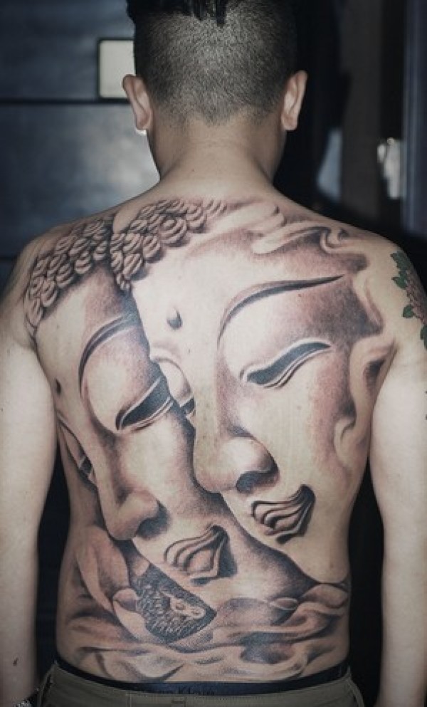经典大气的满背佛纹身