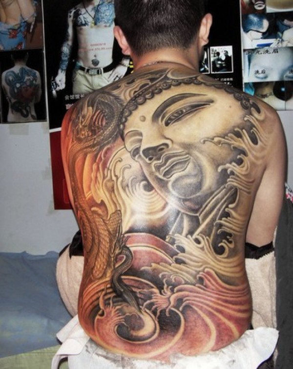 满背大气的佛纹身
