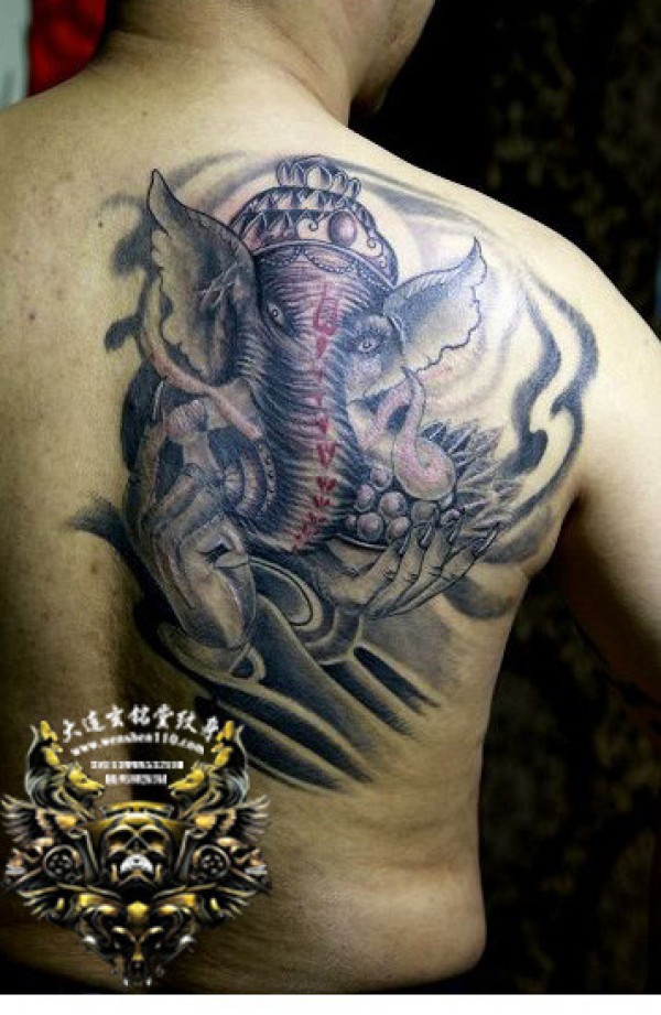 手臂黑灰象神_一组12张手臂上的黑灰象神纹身图案作品欣赏