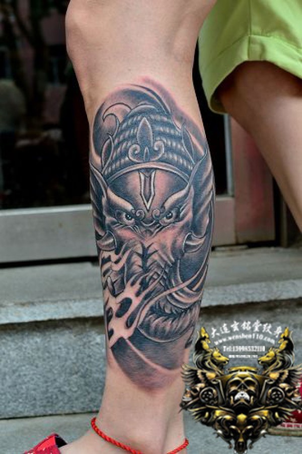 手臂黑灰象神_一组12张手臂上的黑灰象神纹身图案作品欣赏