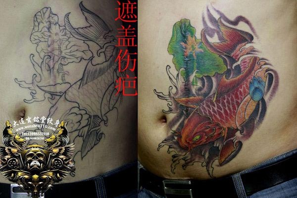 大连玄铭堂纹身 鲤鱼遮盖伤疤纹身