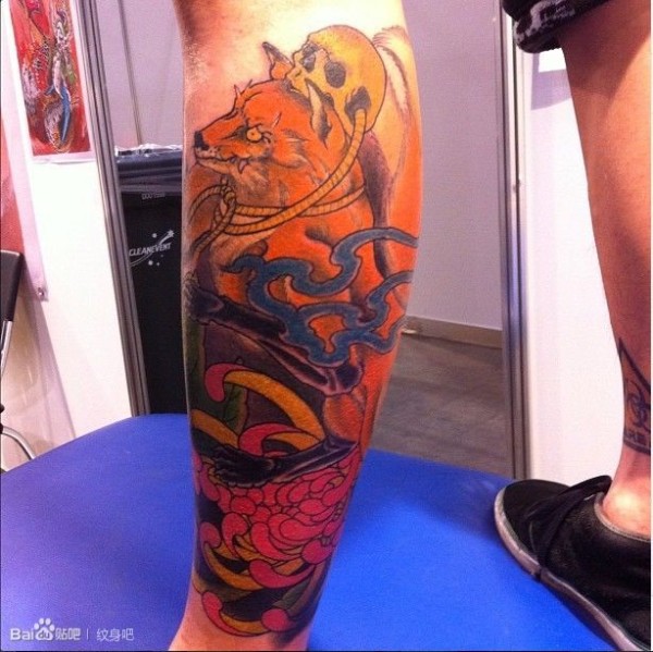 花腿纹身--一组大黑腿纹身图案作品欣赏