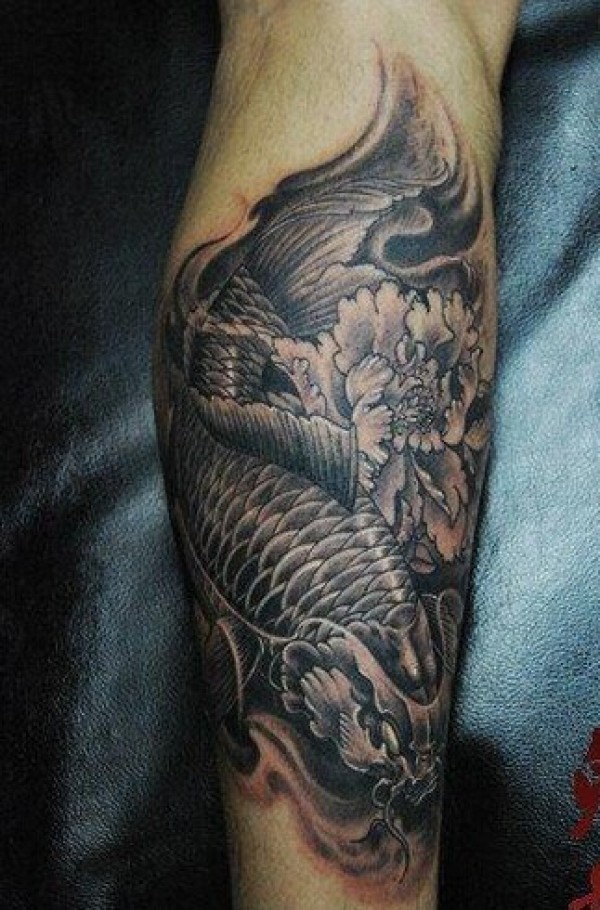 传统鲤鱼花小腿纹身_腿部纹身图案大全_纹身图吧