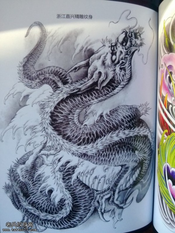 龙纹身手稿_一组老传统黑灰龙手稿纹身图案