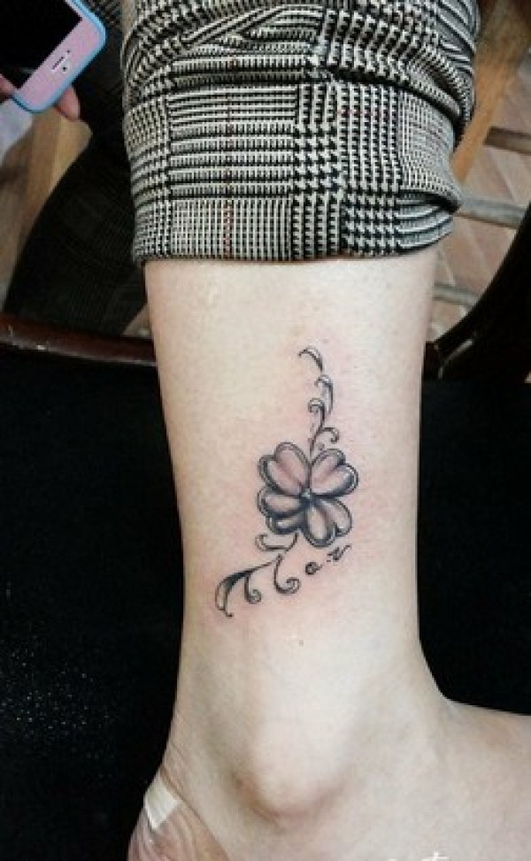 脚踝唯美的四叶草纹身