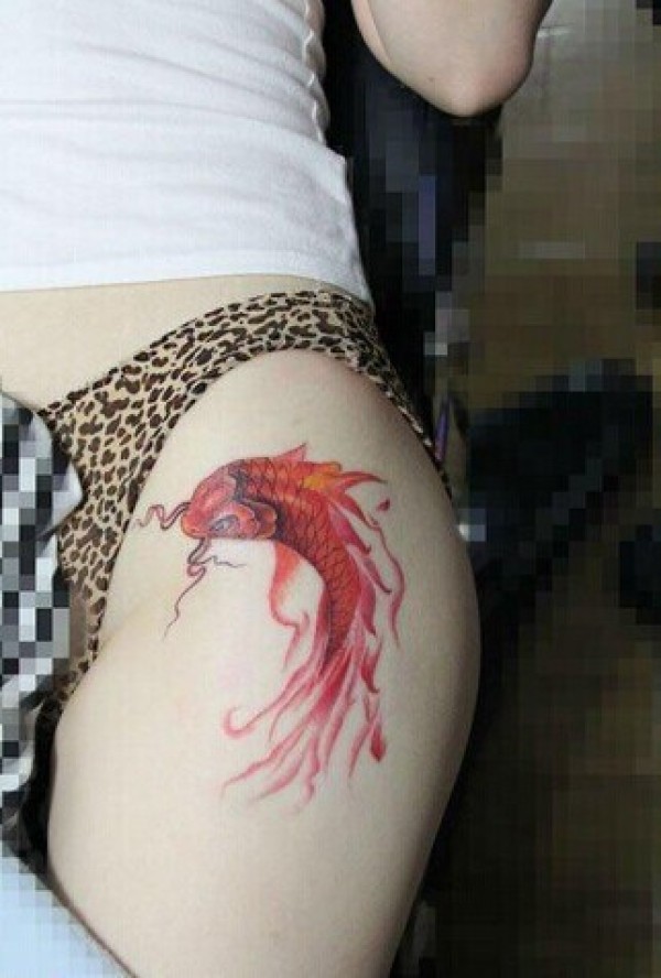 传统鲤鱼花小腿纹身_腿部纹身图案大全_纹身图吧