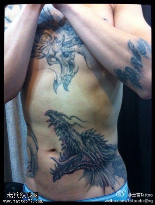 龙纹身手稿_一组老传统黑灰龙手稿纹身图案