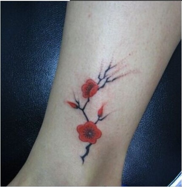 清新小桃花脚踝纹身_脚部纹身图案大全_纹身图吧