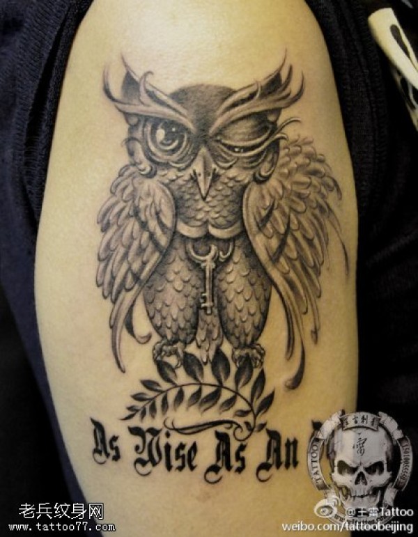 呆萌眨眼猫头鹰纹身图案