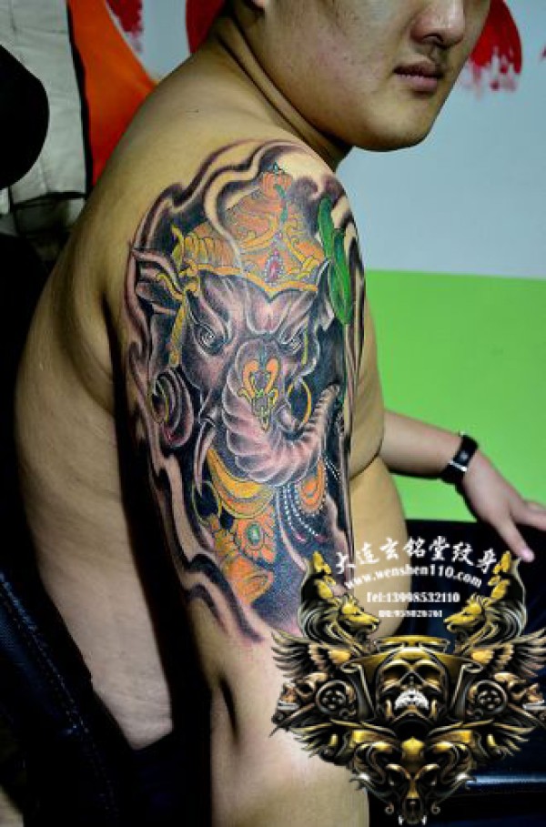 手臂黑灰象神_一组12张手臂上的黑灰象神纹身图案作品欣赏