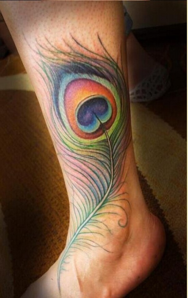 个性脚部漂亮孔雀羽毛纹身图案 图片