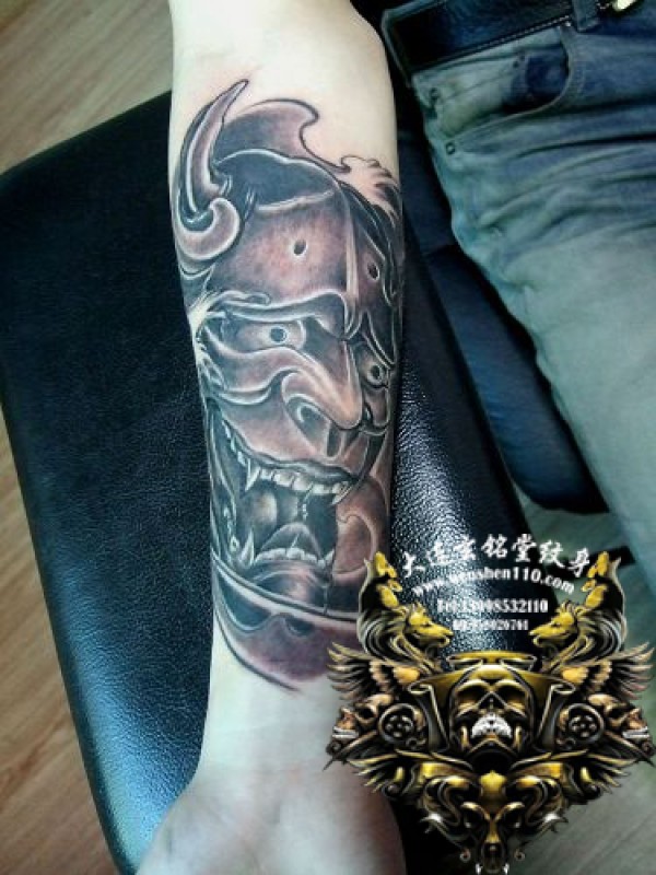 手臂黑灰象神_一组12张手臂上的黑灰象神纹身图案作品欣赏