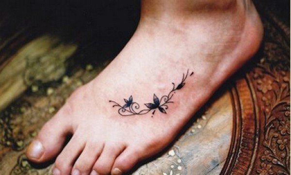 漂亮脚部时尚好看的花卉藤蔓纹身图案