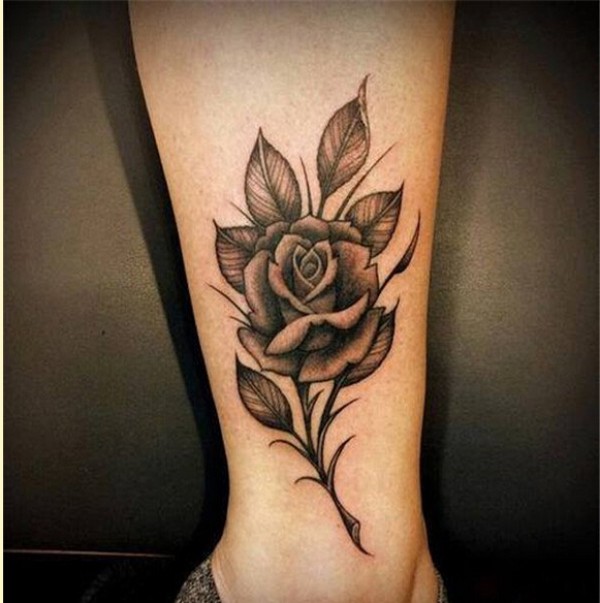 女生脚踝时尚好看的黑灰玫瑰花纹身图图片