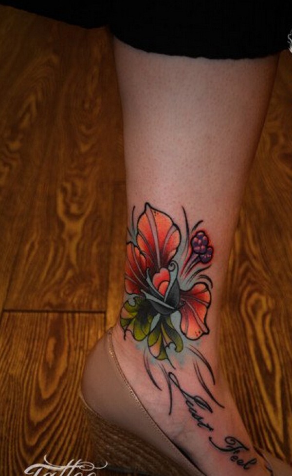 清新小桃花脚踝纹身_脚部纹身图案大全_纹身图吧