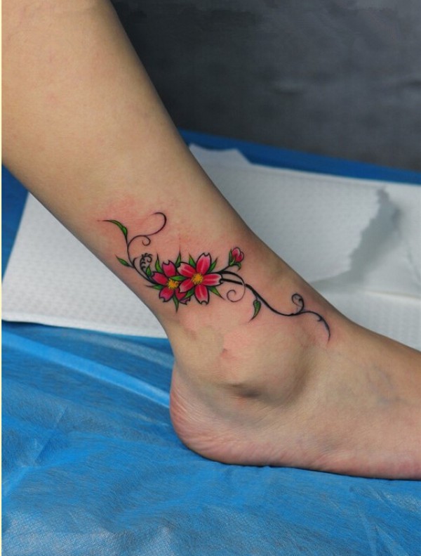 清新小桃花脚踝纹身_脚部纹身图案大全_纹身图吧