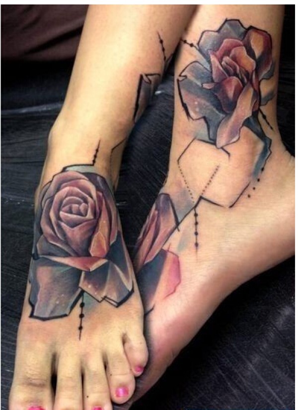 漂亮脚背唯美好看的玫瑰花纹身