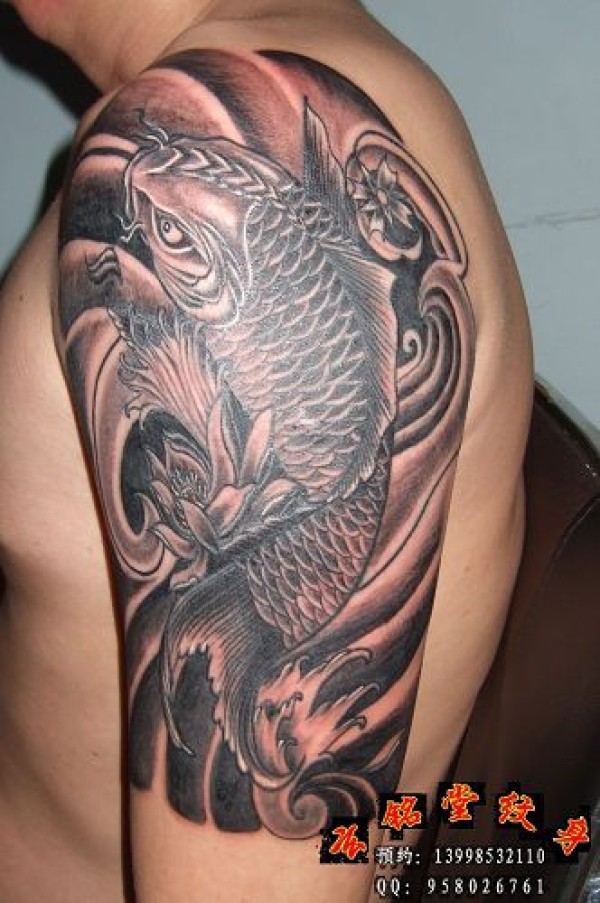 大连玄铭堂纹身上臂鲤鱼纹身