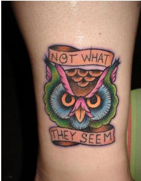 漂亮脚部时尚好看的猫头鹰纹身图案 图片