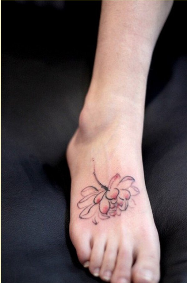 女生脚背漂亮水墨莲花纹身图案欣赏图片