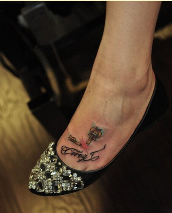 女生脚部漂亮好看的的钥匙与字母纹身图片