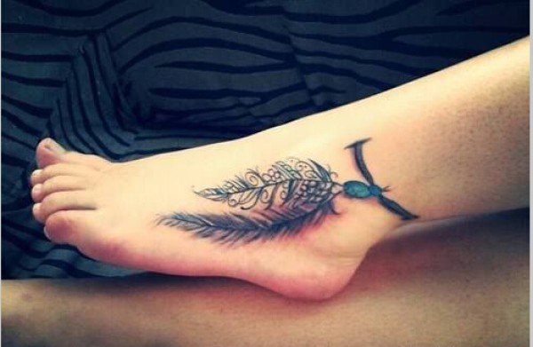 脚踝羽毛文身作品