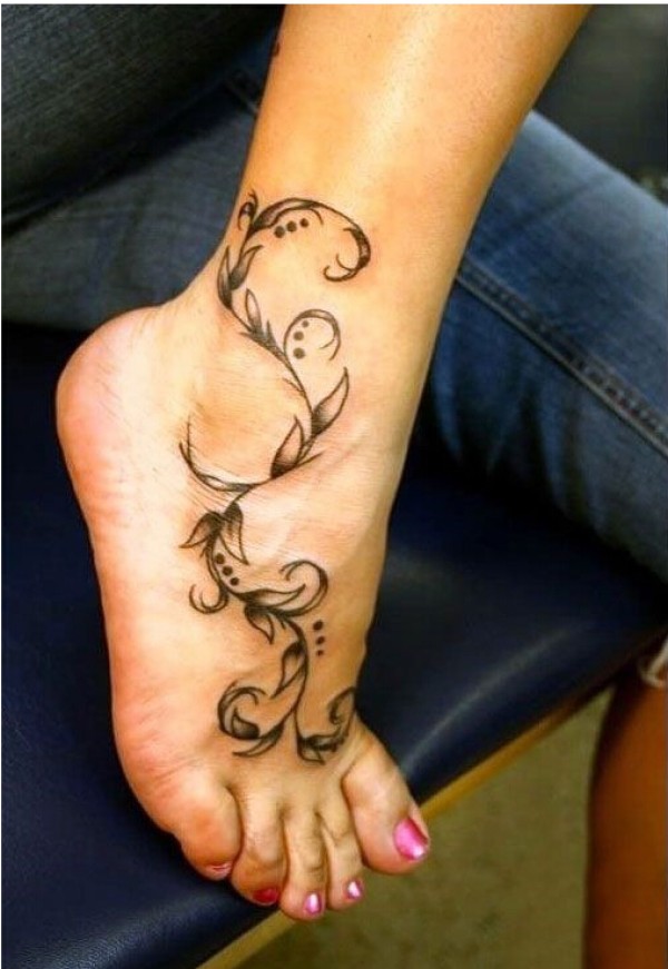 时尚脚背简单漂亮好看的花藤纹身