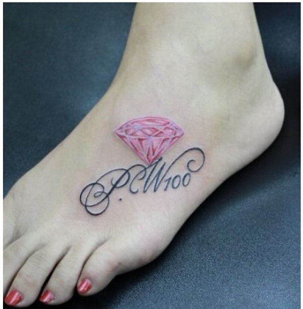 美女脚部漂亮好看的彩色钻石纹身
