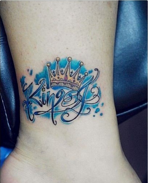 漂亮脚踝好看的彩色皇冠字母纹身图案