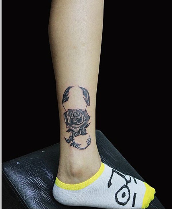 时尚脚部漂亮好看的玫瑰纹身图案 图片