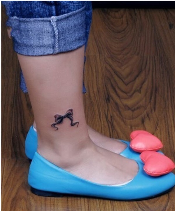 女生脚部可爱好看的蝴蝶结纹身图案 图片