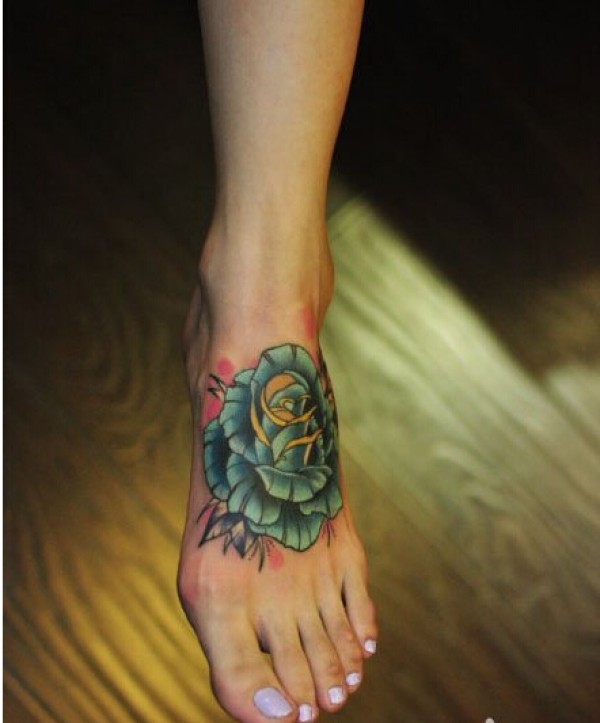 女生脚部漂亮好看的玫瑰花纹身图案