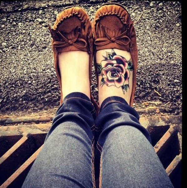 女生脚背漂亮好看的彩色玫瑰花纹身图图片
