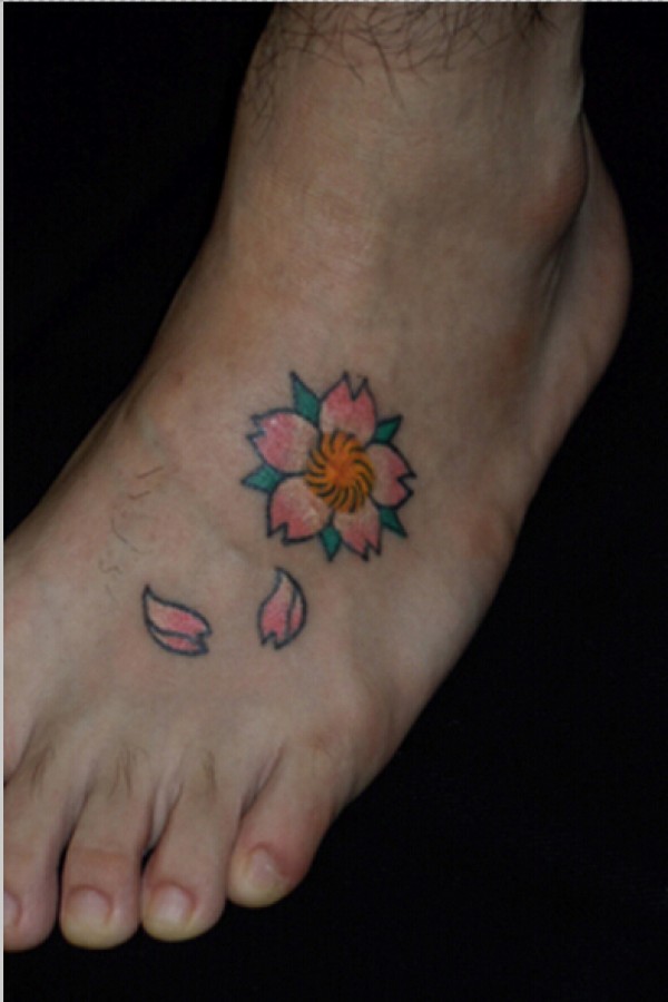 清新小桃花脚踝纹身_脚部纹身图案大全_纹身图吧