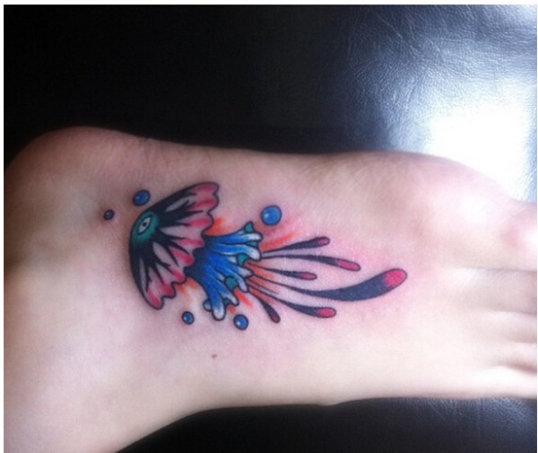 脚背上时尚好看的彩色小水母纹身