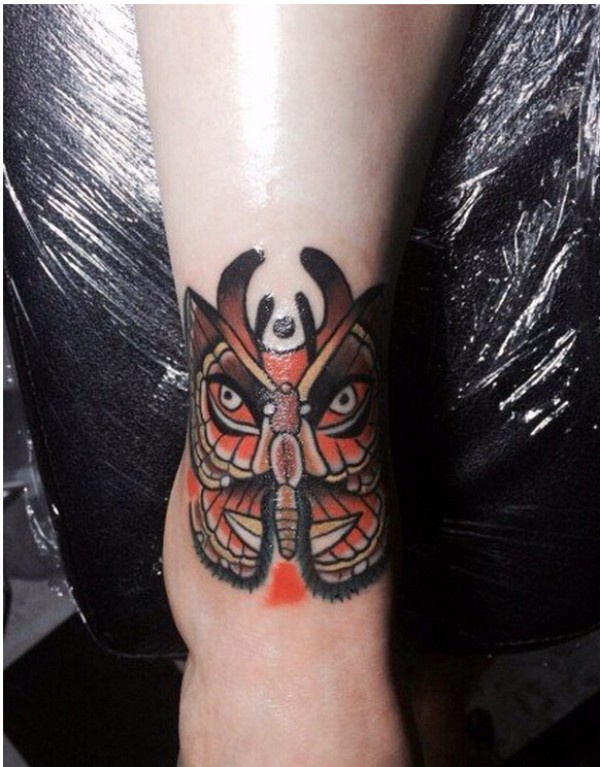 漂亮脚背上好看的彩色眼睛蝴蝶纹身图图片