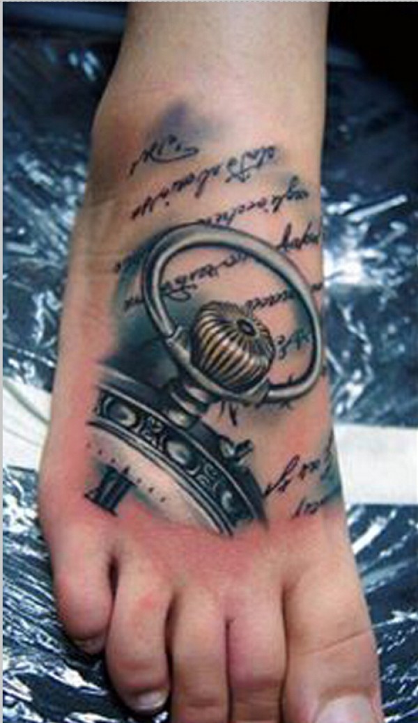 脚面上唯美时尚好看的钟表英文纹身图图片