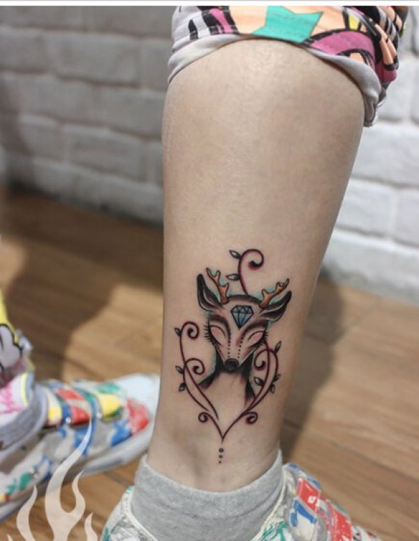 脚踝漂亮可爱好看的小鹿纹身图片图片
