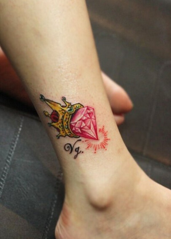 漂亮脚踝唯美好看的彩色钻石皇冠纹身图片