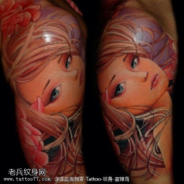 小腿艺妓纹身图案