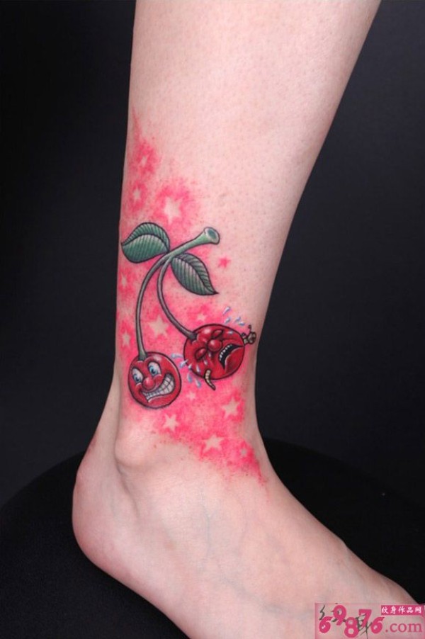 个性脚踝创意漂亮好看的樱桃兄弟纹身图片