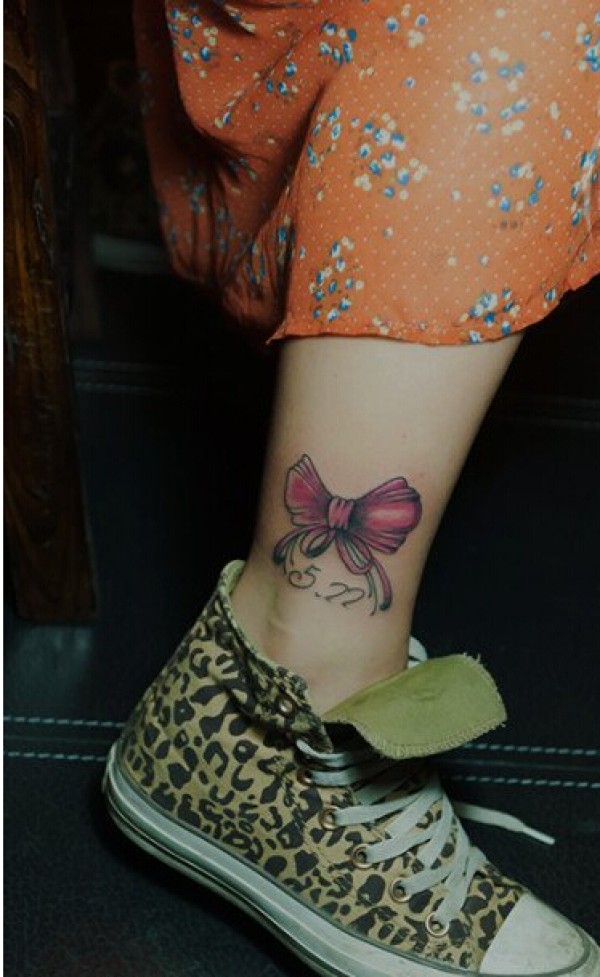 漂亮脚踝唯美好看的蝴蝶结纹身