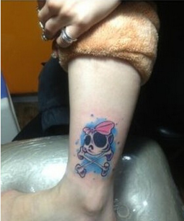 脚踝上个性好看的彩色卡通骷髅头纹身图片