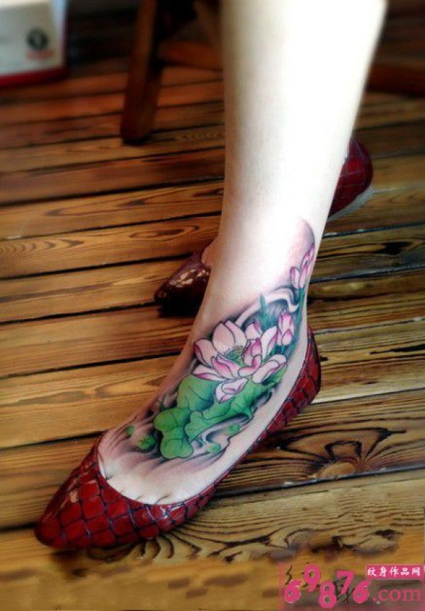 脚背上唯美好看的夏日美丽荷花纹身图图片