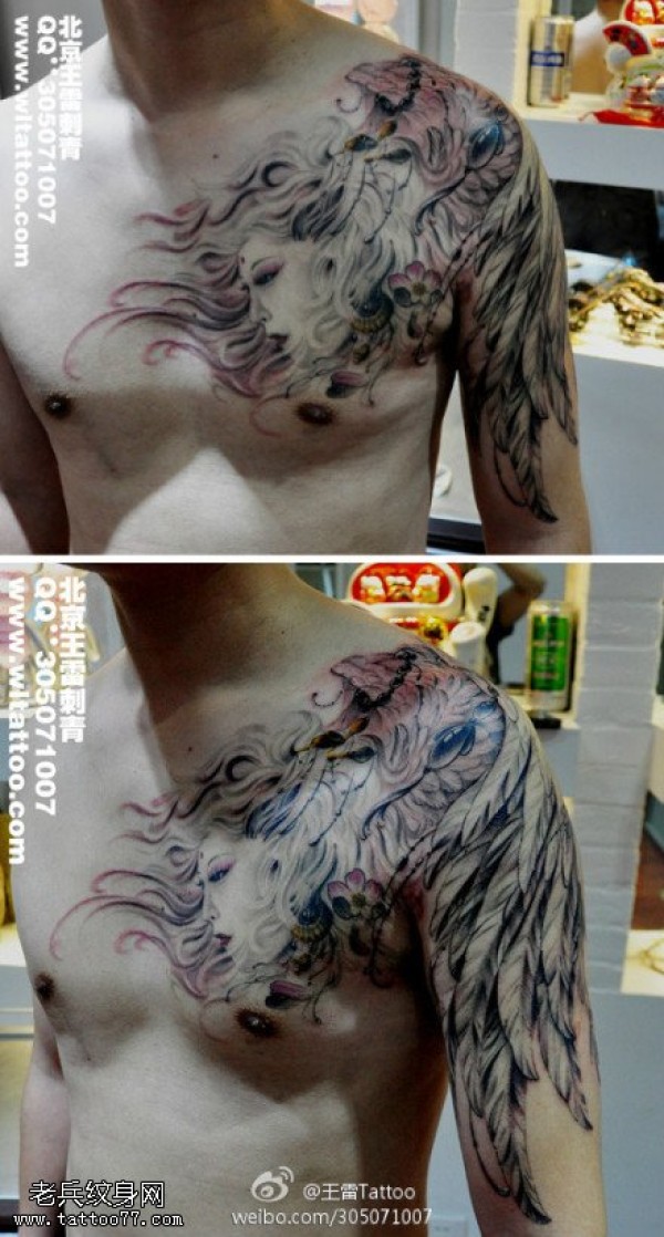 女生肩花纹身_15张女性双肩对称的肩花纹身图案作品图片
