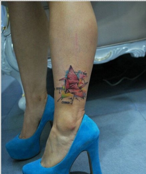 漂亮脚踝上性感好看的泼墨千纸鹤纹身图片