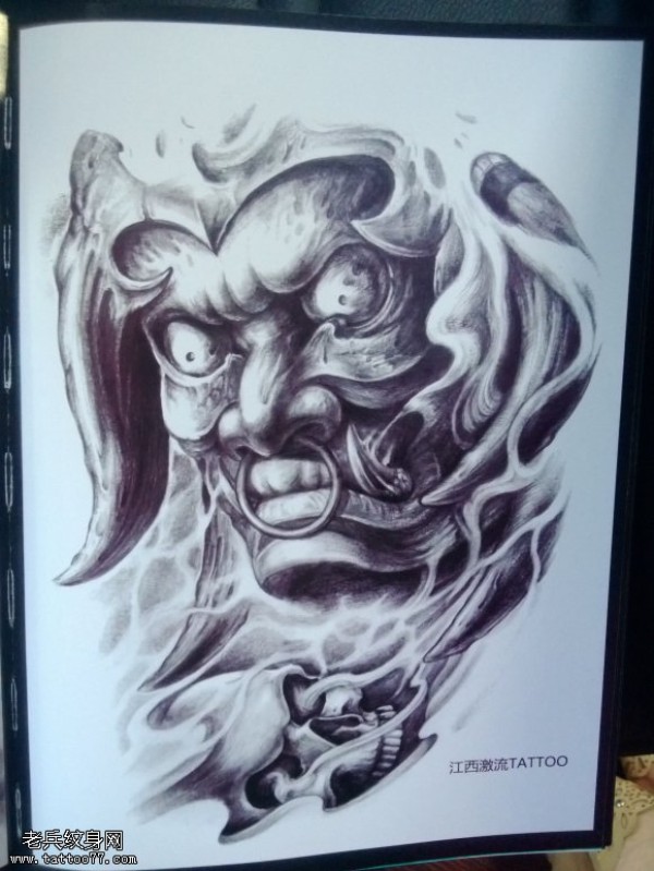 能面万媚纹身手稿_52张日式能剧面具纹身手稿图案素材欣赏