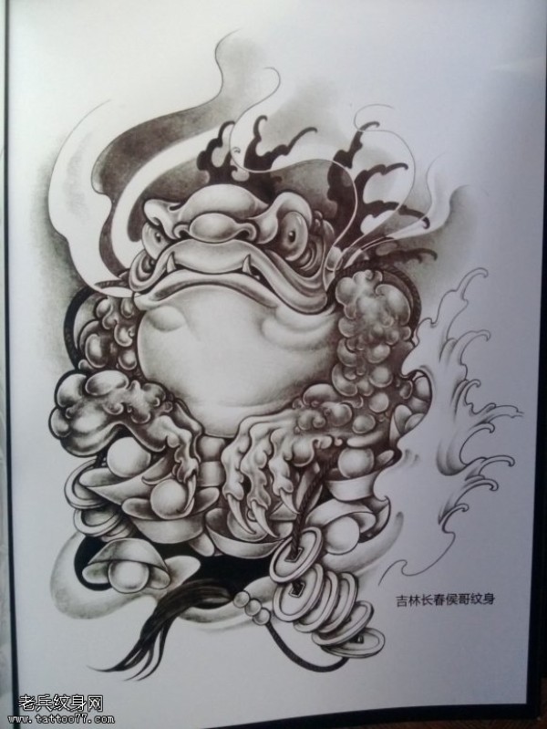 龙纹身手稿_一组老传统黑灰龙手稿纹身图案