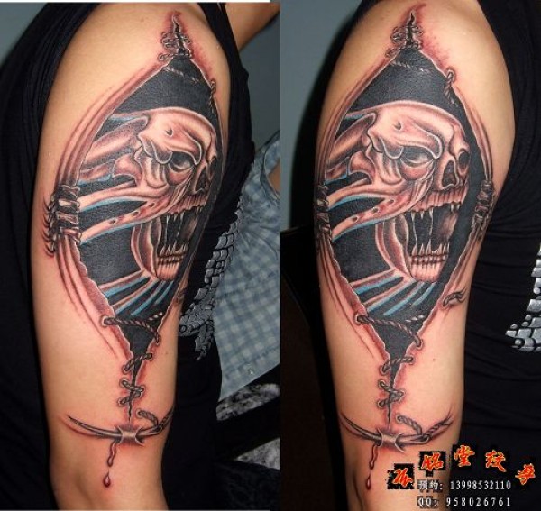 大连玄铭堂纹身上臂里面出来一个鬼头