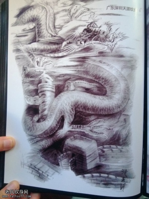 龙纹身手稿_一组老传统黑灰龙手稿纹身图案